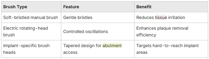 Water Flossers – Direct a low-pressure stream around the implant base to flush out bacteria.